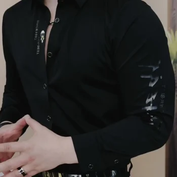 High End özelleştirilmiş siyah gömlek erkek uzun kollu dikişsiz elastik dış giyim