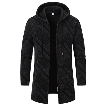 Men Hooded Long Cardigans Sweatercoats Winter Fleece Warm Cardigans Sweaters New Fashion Male Black Outwear Casual Sweaters 4X