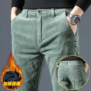 Men Vintage Fashion Letter Embroidery Corduroy Thick Velvet Casual Pants Autumn Winter Male Solid Slim Pockets Straight Trousers