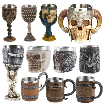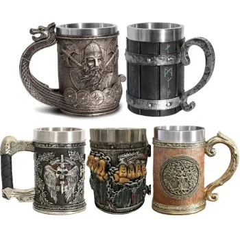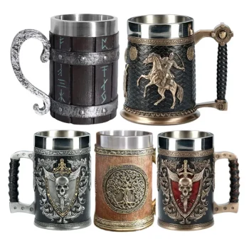 Norse Mythology Beer Mugs Coffee Cups Iron Viking Tankard Stainless Steel 3D Resin Wine Glass Mug Drinkware for Men’s Gift