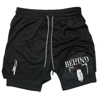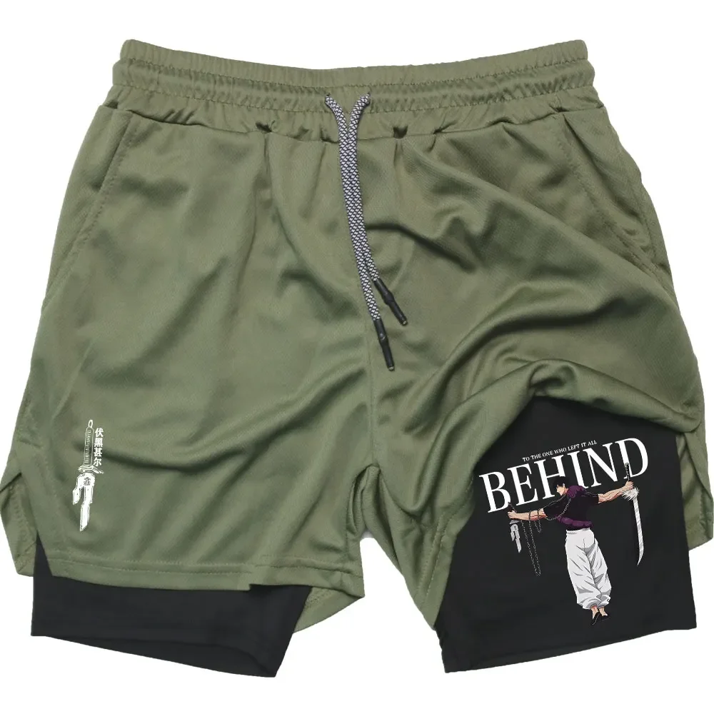 Double Layer Fitness Shorts Anime Performance Shorts Toji Printed Men GYM Shorts Workout Running Mesh 2 In 1 Sport Short Pants