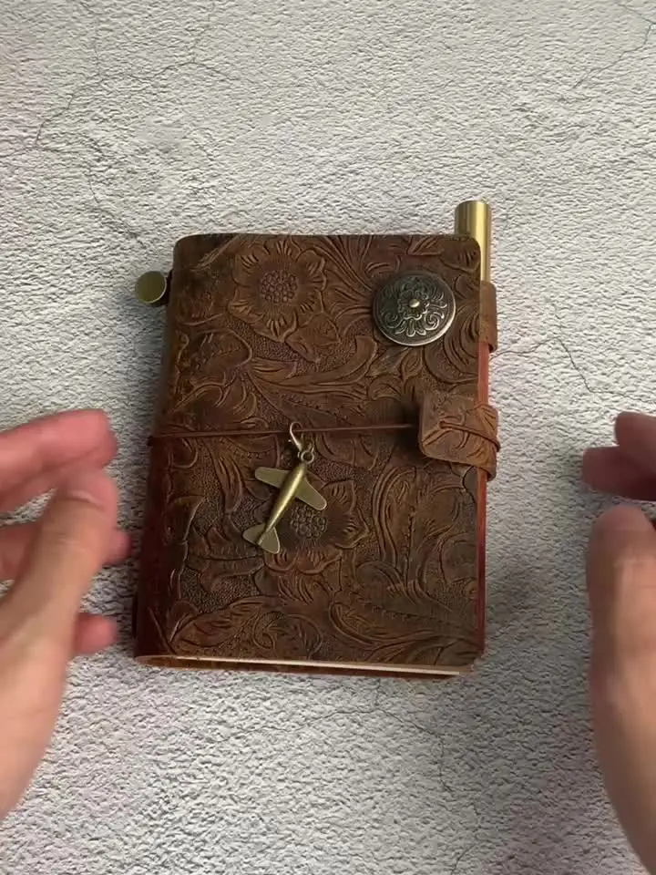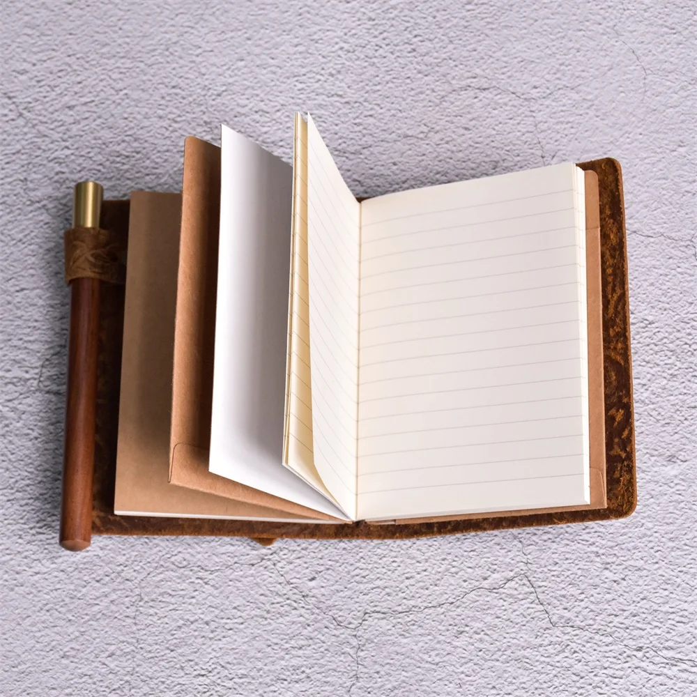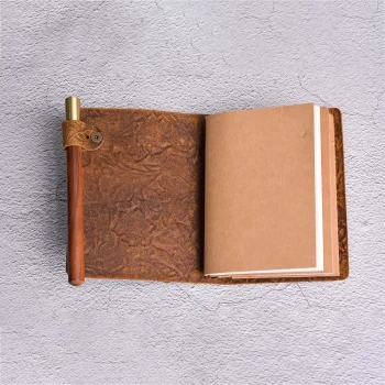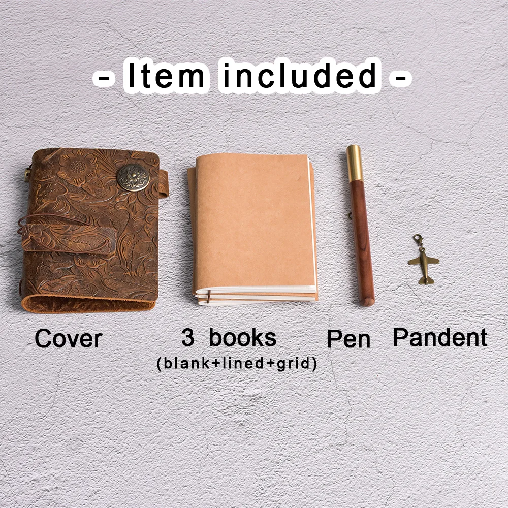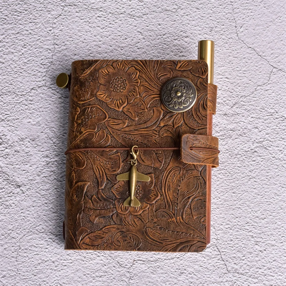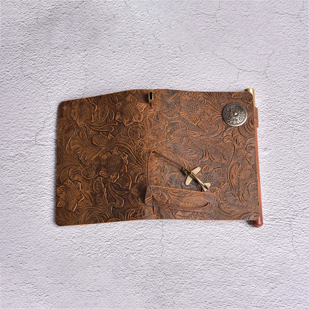 Flower Genuine Leather Notebook Brown Retro Journal Handmade DIY Planner Replace Books