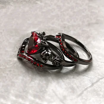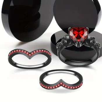 Gothic Style Rings Plated Inlaid Heart Shape Zircon Horror Skull On The Band Black / Red / Purple Just Pick One Halloween Decor