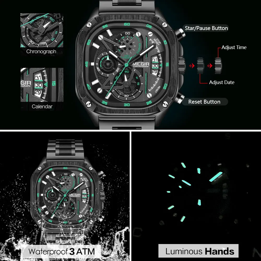 Funktion alle gegeben. schöne Verpackung, ich musste das Metallband etwas kürzen, aber das Werkzeug ist unbrauchbar, wir hatten zum Glück noch bessere Versionen von diesem tool in einer Schublade gefunden. ansonsten bin ich bisher zufrieden. der Verschluss hakt ein wenig, da hatte ich schon deutlich bessere Qualität, aber da hat auch das Band fast so viel gekostet wie die Uhr hier. für den Preis top. Zeiger leuchten gut nach 3-5 sek Taschenlampe und halten auch eine gewisse Zeit ein leuchten. genau was ich gesucht habe. schöner schwerer Metall Chrono für Männer. das Militärband habe ich erstmal noch nicht getestet. das nehme ich vielleicht wenn das Metallband zerkratzt ist oder mich nervt, wegen Verschluss