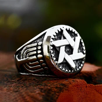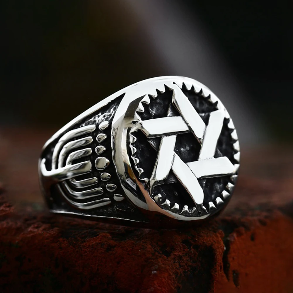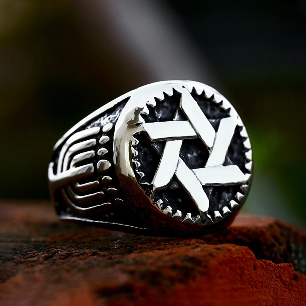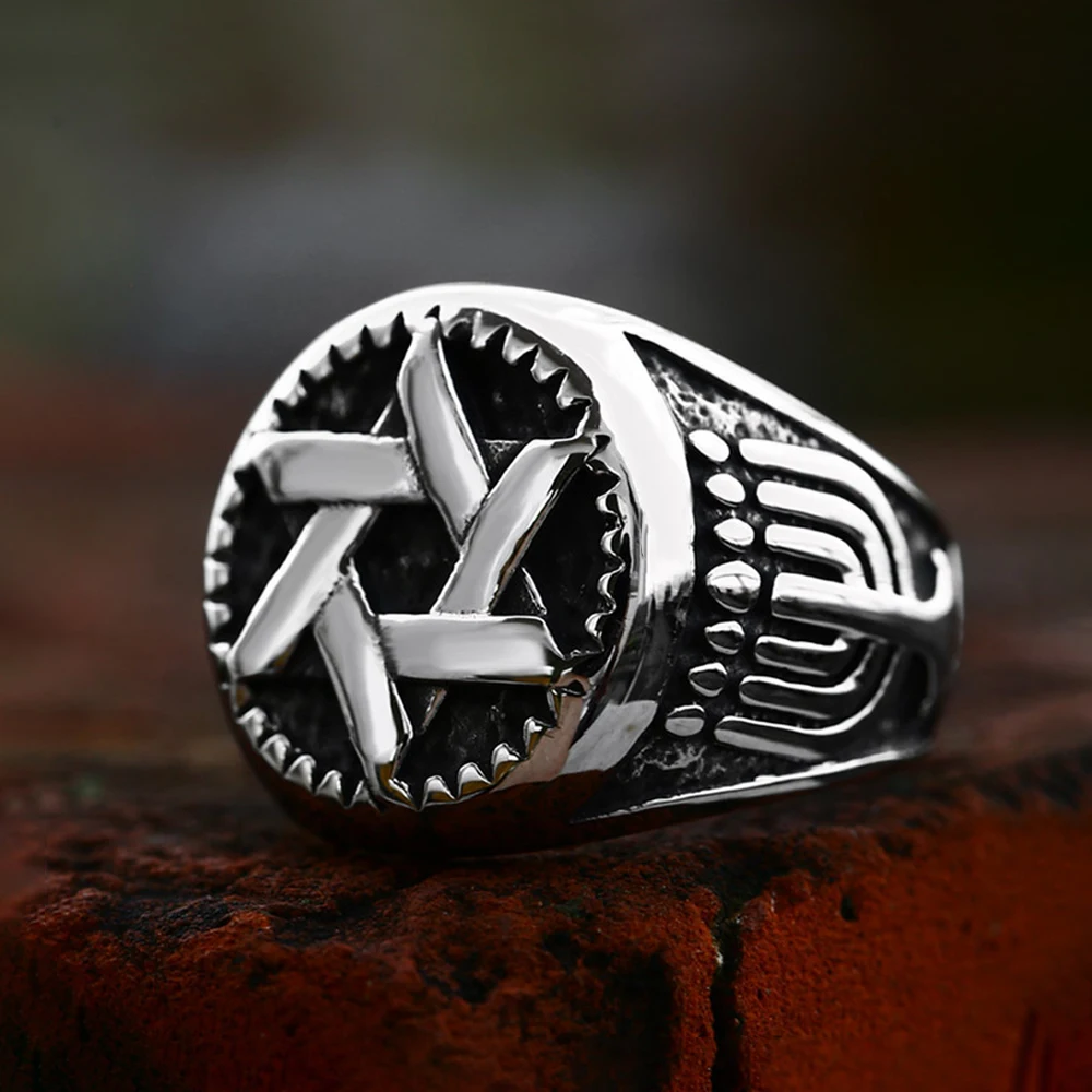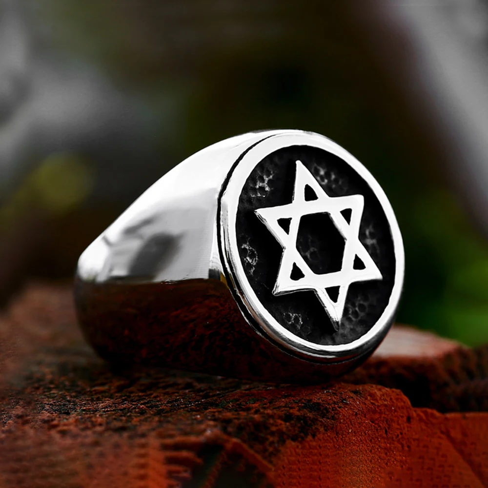 Name:Fashion Retro Star of David Ring Punk Hip Hop Stainless Steel Men Woman Hexagram Ring Motorcycle Amulet Jewelry Gift Wholesale