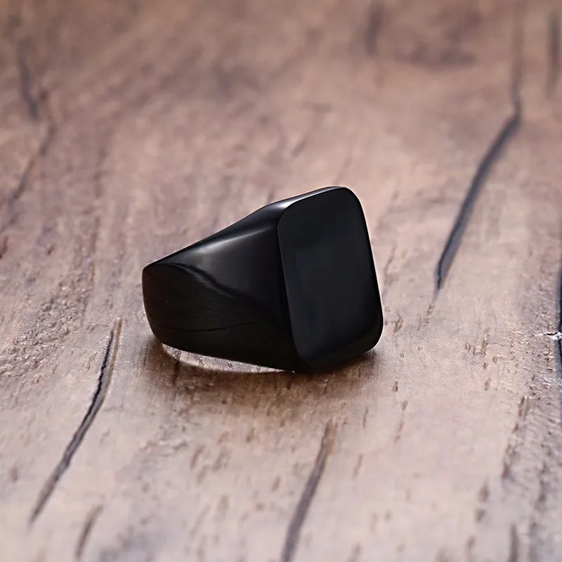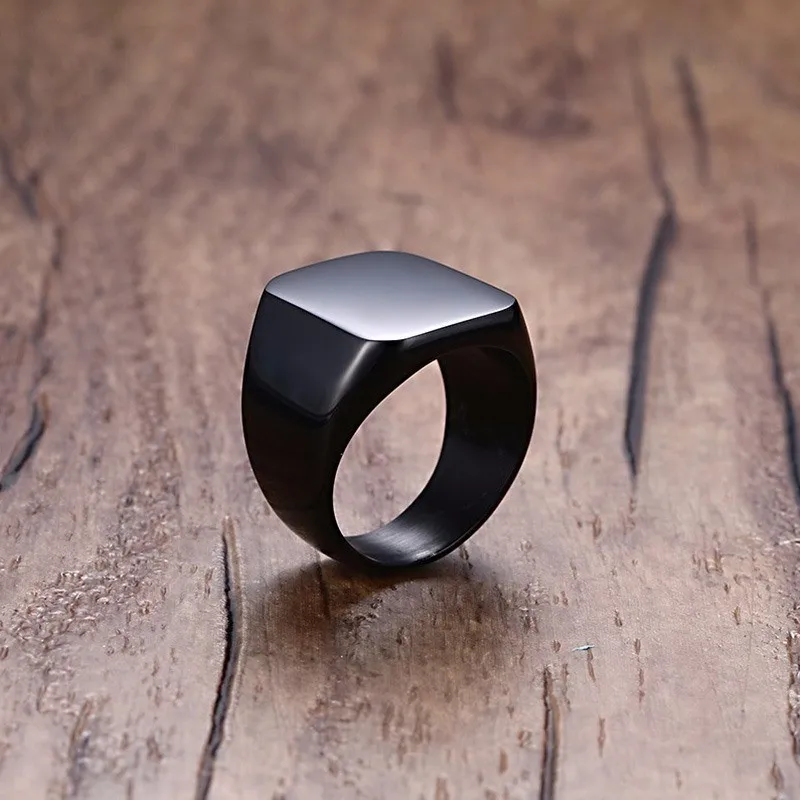 MONOGRAM SIGNET yüzük paslanmaz çelik bisikletçi yüzükleri erkekler için MONOGRAM fantezi ilk kare düz üst bant siyah