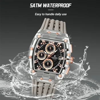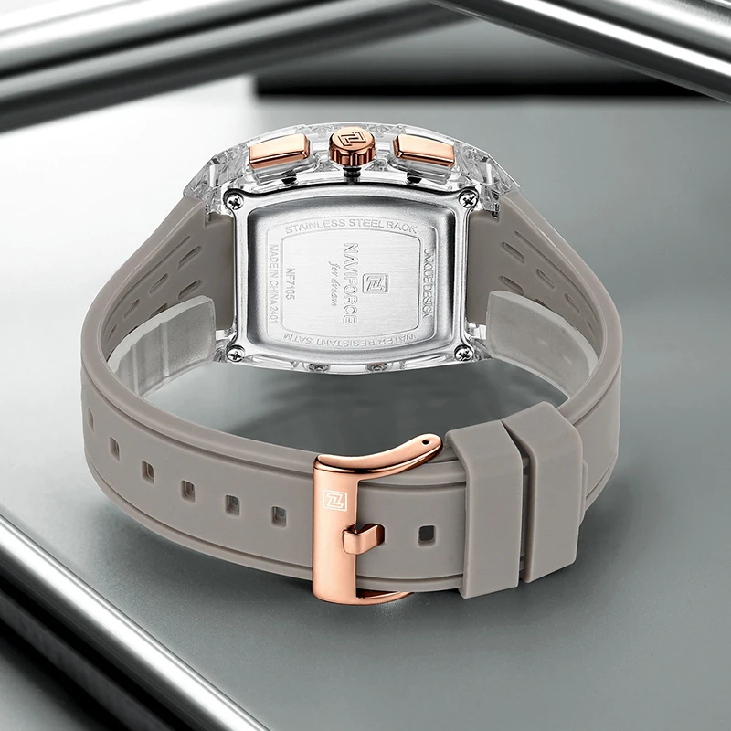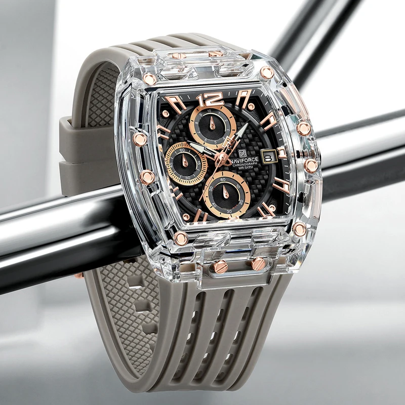 El reloj llegó a mis manos en menos de dos semanas, en excelentes condiciones y muy bien embalado a través del servicio Choice. Es una pena que la aguja de la función que mide fracciones de segundo 1/10 (subesfera superior) se encuentre descentrada. Compré el mismo reloj con manecilla en color negro y también llego con el mismo problema. Investigué si el modelo NAVISFORCE 7105 cronógrafo tenía esta peculiar “característica” de apuntar a 1 y no a 10 dentro de la subesfera, pero las imágenes publicitarias suministradas por el fabricante, revelan que todas las agujas de las tres subesferas tienen que apuntar hacia las doce en punto. Esta situación me lleva a especular, que se trata de una falla de un defecto de fabricación recurrente al momento del montaje. Aparte de esta terrible anomalía, que arruina la estética general del reloj, los mecanismos del cronógrafo trabajan correctamente.