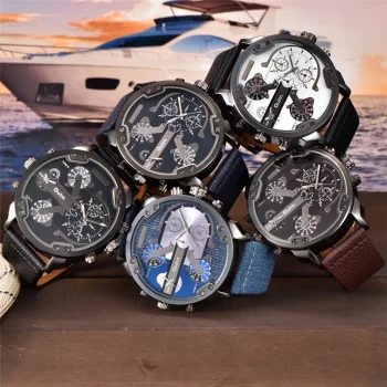 Oulm HP3548 Men Big Watches Luxury Brand Two Time Zone Quartz Watch Large Dial Casual Sport Male Wristwatch