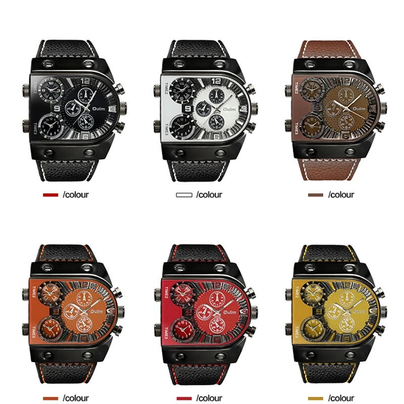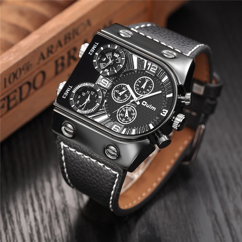 Oulm Watches Mens Quartz Casual Leather Strap Wristwatch Sports Multi-Time Zone Military Male Clock erkek saat DropshippingOulm Watches Mens Quartz Casual Leather Strap Wristwatch Sports Multi-Time Zone Military Male Clock erkek saat Dropshipping