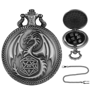 Polyhedral Dice Vintage Dragon Pocket Watch Case Combines Dice Pendant Chain For Entertaining Role-Playing Games