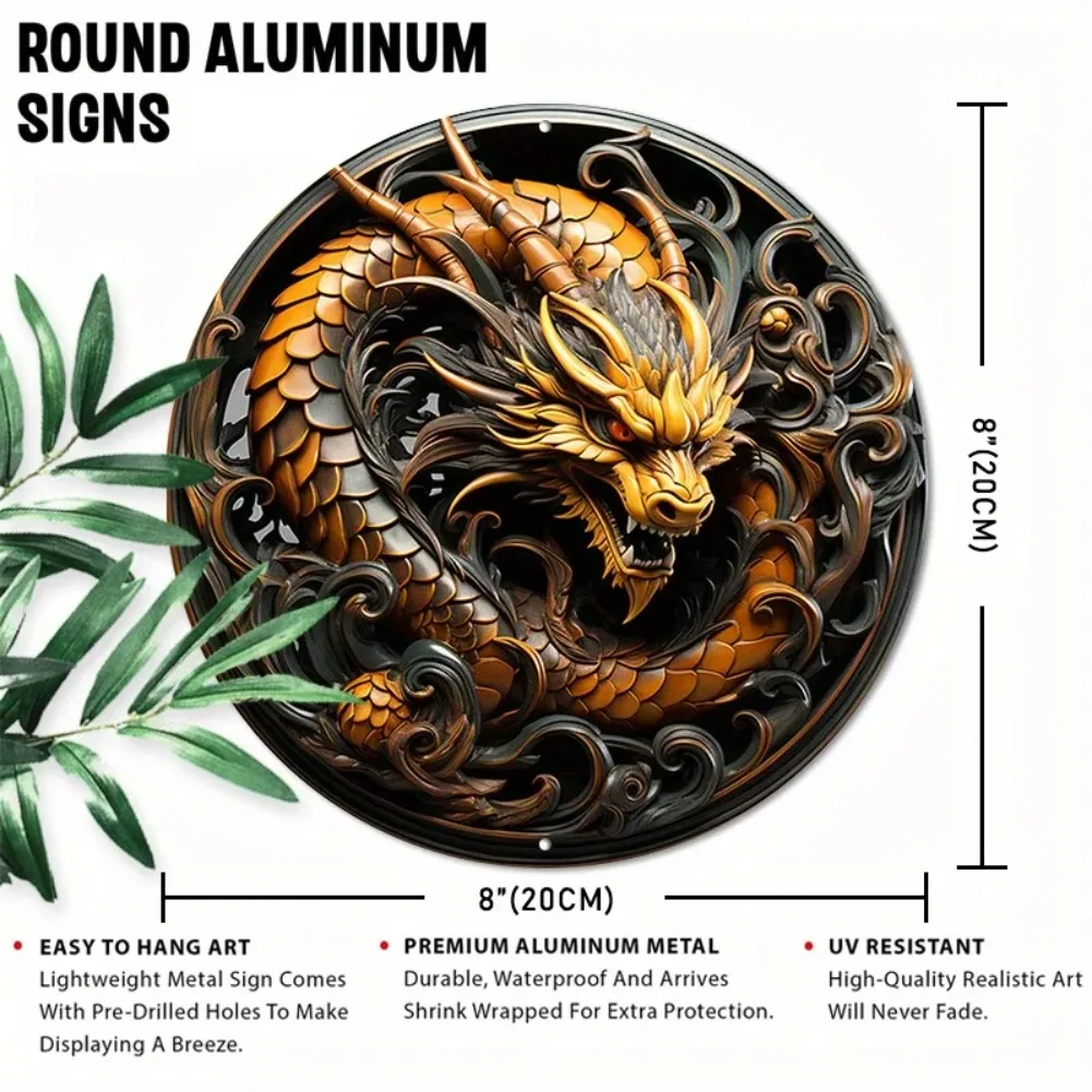 Round Aluminum Metal Sign,Creative Dragon Pattern Wall Art Metal Sign,Home And Office Decor, garage wall decor room decoration