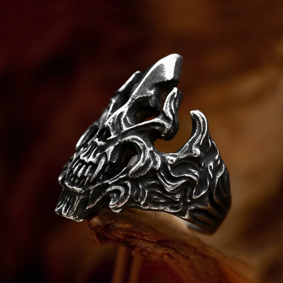 Yeni Vintage 316L paslanmaz çelik siyah kafatası yüzük erkekler kadınlar için gotik Hip Hop film kafatası yüzük Biker benzersiz muska takı hediye